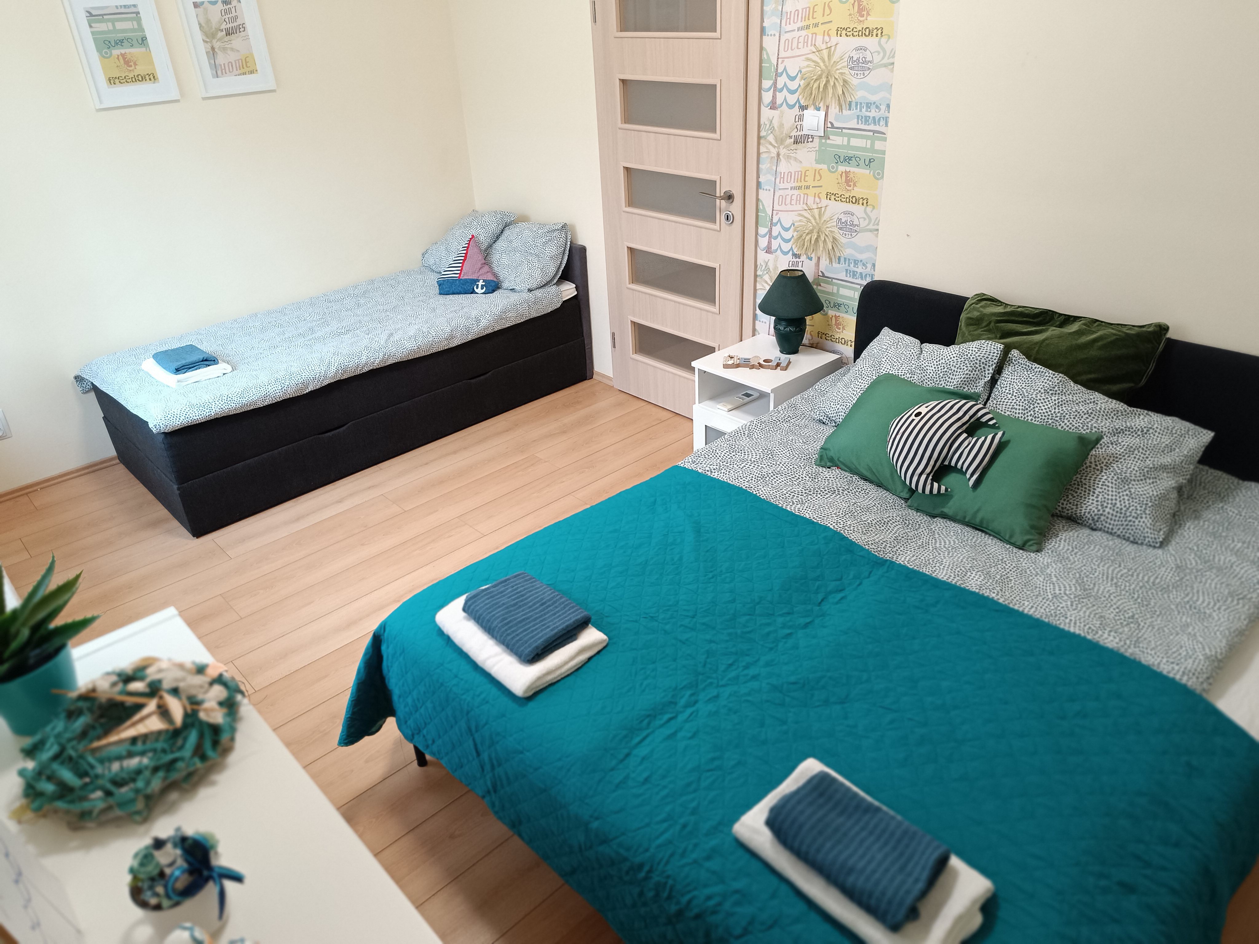 Az egyik hálószobában ágyszerkezetes franciaágy található. A másik hálószobában kétszemélyes kényelmes heverő van, ebből a szobából nyílik egy kisebb pihenőszoba is, ahol egy személy részére (pl. szülőkkel együtt aludni kívánó gyermek) pótágyazási lehetőség van. A harmadik szobában egy kétszemélyes kihúzható ágy biztosítja a kényelmes pihenést. Mindegyik szobát különleges tapéták teszik hangulatossá.